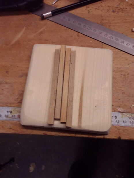 Hacer una lámpara de madera base en forma de un obelisco para una lámpara de mesa o mesita de noche.Materiales que necesitas son una tabla de madera gruesa de 3/4" 4 pulgadas de ancho por unos 40 pulgadas de largo; un pedazo de madera contrachapada d
