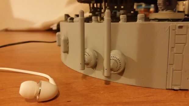 A medio camino a través de este proyecto que me di cuenta el modelo necesita a algún tipo de base o pedestal para estar de pie. De esta manera podía ocultar los cables y el adaptador. He pensado en esto y trató de hacer una base de madera. Simplemente no se ve bien, que no tenía nada que ver con el tema de la nave espacial. Terminé de cortar de la parte inferior de un cubo de plástico y dando la vuelta. Luego le dio un rápido lijado y pegado en un montón de bits y piezas que tuve en mi partsbin. Pegué en un laptopfan, fishingtackle equipo, transistores, espaciadores, alambre eléctrico, de refrigeración aletas y qué no. Incluso picados hasta unos auriculares y había pegado en la. Después de que el pegamento seque me pintada todo con una imprimación y algunos sutiles colores gris. Y listo: we'v consiguió un landingzone spacy mirando!