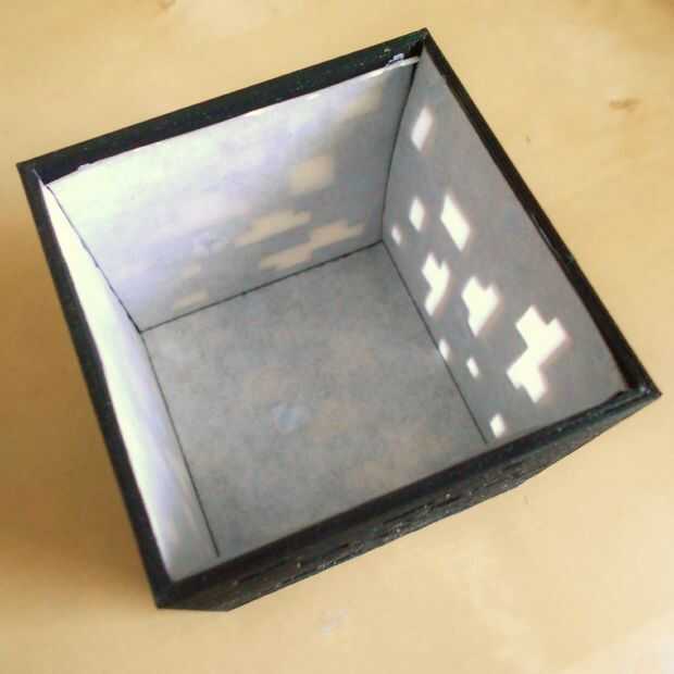 Entonces usted necesita hacer los paneles del difusor para que la luz esté distribuida igualmente. Usted puede utilizar algunos plexiglás arenado o papel de pergamino, sólo tienes que cortar 5 cuadrados para encajar en el interior de la lámpara.