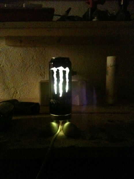 Hi todo el mundo!Básicamente la idea de este proyecto fue hacer una lámpara que era fresco aspecto y funcional. En sobre de mi muchos dobladores de cafeína diseño web compré una ridículamente grande lata de Monster, 32 oz. el equivalente de dos latas