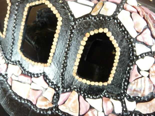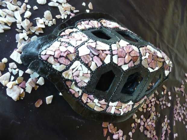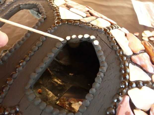 A partir de ahí, dispersa las conchas pulidas fuera sobre una superficie de trabajo grande y comenzó el proceso de diversión desconcertante mosaico. Pegamento para madera gorila se seca claro, así que usé para fijar las conchas pulidas, también.