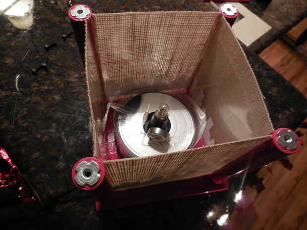 Pegamento caliente los paneles laterales de arpillera a los lados de la caja y finalmente a enroscar la tapa de la caja.