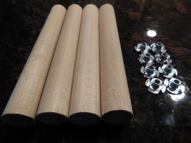 Mida y corte cuatro piezas de 5" de la varilla de madera. Luego lija los cuatro pedazos. Estas piezas se utilizará como las columnas que formarán el cuadro.