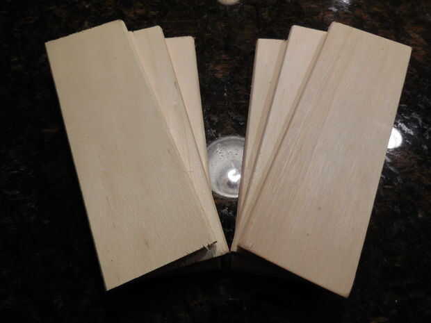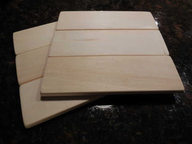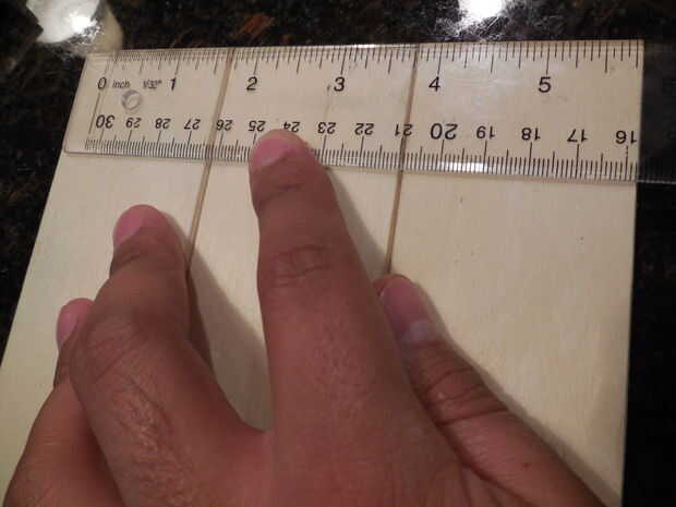 Mida y corte seis 5,9" las piezas de las tres tablas de madera. Papel de lija y pegamento de madera de los 3 primeros pedazos juntos luego hacen lo mismo para el segundo conjunto de tablas, esto formará la base y la tapa de la caja. Tome su tiempo lijado como esto determinará cómo lisa será la pintura de acabado al final.