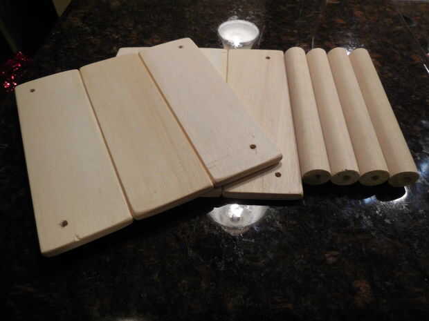Perfore un orificio de 2 cm en ambos extremos de cada una de las columnas, estos agujeros son donde eventualmente le martillo las tuercas en T en. A continuación, perfore orificios en las cuatro esquinas de la base y la tapa de la caja, estos agujeros son donde se conectarán las columnas a. Los agujeros en la base y la tapa deben colocarse estratégicamente para hacer espacio para el cristal giratorio pantalla que se colocará en el centro de la base.