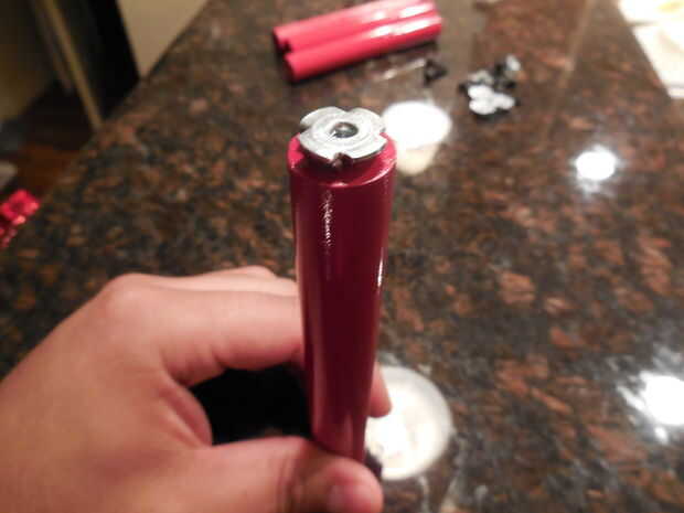 Martille las tuercas en T en los extremos de las columnas pintadas. La ventaja de usar las tuercas en T es que usted podría utilizar una llave hexagonal para retirar fácilmente la tapa, si la bombilla se apaga.