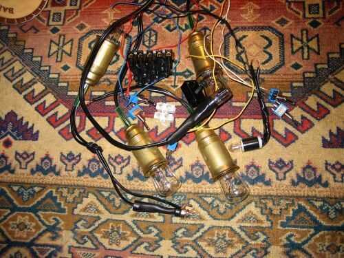 Y la parte principal de la magia - la bombilla de luz de encendido. Usted puede encontrar en armaduras de neón, como un cilindro pequeño como cosa de plástico, con un bulbo de cristal y un capacitor paralelo soldada con él. No retire el condensador y no conecte a la energía del hogar como una sola parte! Esto es un foco de luz combinado con un interruptor de bi-metall, y este es el detonante para el parpadeo al azar en esta lámpara. Esta parte está brillando con colores púrpura o anaranjados, cambiar aleatoriamente el in-out de los bulbos. Aislar todo!