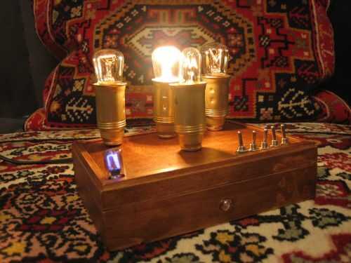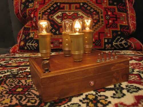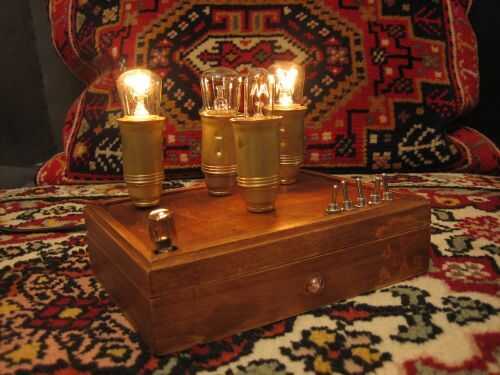 Esta lámpara es un sistema de dinámicas, destellar, brillar intensamente al azar, pero pueden fijarse varían. Aquí les dejo algunas fotos todavía, pero la luz está cambiando continouosly, no es una fuente de luz estable - pero, si lo desea, con las combinaciones de interruptores se puede establecer en una lámpara normal, estable con más potencia de luz. Acabo de probar los interruptores! Los cinco interruptores tienen efecto entre sí, también. El sistema es caótico a primera vista. En el modo de abrir y cerrar la intensidad y la demora depende de la potencia de las bombillas y el conjunto de los interruptores. Con cuidado, pueden hacer experimentos con bombillas de baja energía - a un limite de corriente que no puede cambiar el brillo de la ignición, pero brilla intensamente pálido. Para utilizar como una lámpara normal encontrar la combinación para él - apagar todos los parpadeos y aumentar la potencia de luz te.