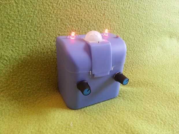 Este es un proyecto de bricolaje con alimentación a batería. El dispositivo se cambia automáticamente en cuando se detecta movimiento. Puede ser utilizado en dormitorios, baños, closets o corte oscuro etc. que luz si es necesario, no hay alimentación de CA es necesario. El color del LED RGB se puede configurar con la ayuda del potenciómetro izquierdo. Hay un segundo potenciómetro, que puede modificar la sensibilidad de luz (sol, lámparas de otros), con eso él se encenderá los LEDs sólo si es realmente oscuro. El Arduino es en modo de reposo, sólo el detector de movimiento se enciende. En caso de movimiento, el Arduino es alimentar en la comprobación de la resistencia de la foto, si el valor medido de la AD de la fotorresistencia es más brillante que el nivel del potenciómetro derecho que se enciende el LED como el sensor de movimiento está activo. Antes de que el LED se enciende el Arduino verifica el nivel del potenciómetro de la izquierda y cambio el color de acuerdo a este nivel. Comienza con un color (rojo, azul, verde), de dos colores (rojo, azul, verde, rojo y verde) y tres colores (rojo-azul-verde). La sensibilidad de los sensores de movimiento y el tiempo de activación es variable también en el módulo de movimiento con potenciómetro dedicado. Necesita 3 piezas de pilas AAA, debido al sensor de luz y energía hacia abajo de modo que puede funcionar por largo tiempo del período.