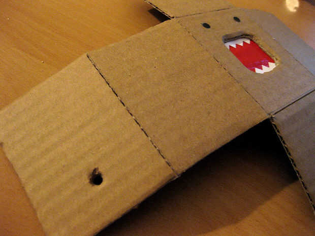 3. una vez que el pegamento esté seco puede hacer un agujero en la pieza posterior de Domo Kun.