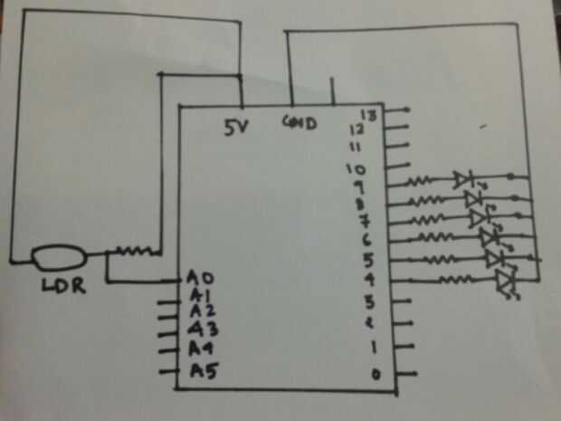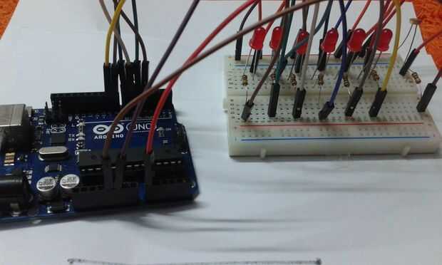Las conexiones de la lámpara de noche son bastante simples. Asegúrese de que conectar los leds a los pines de Arduino correcto.