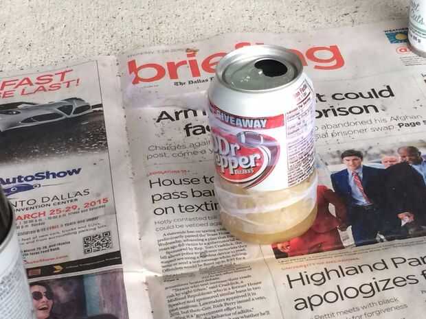 Asegúrese de que la pintura de abajo haya secado por completo. Luego enrolle la cinta alrededor de la pintada exactamente donde la pintura se termina en la parte superior de la porción. Si quieres estar más segura, abrigo hacer un milímetro por debajo del extremo. En el cuadro que estaba haciendo 3 colores pero dos colores trabajo mejor así ignorar la cinta en la parte superior de la lata si estás haciendo dos colores.