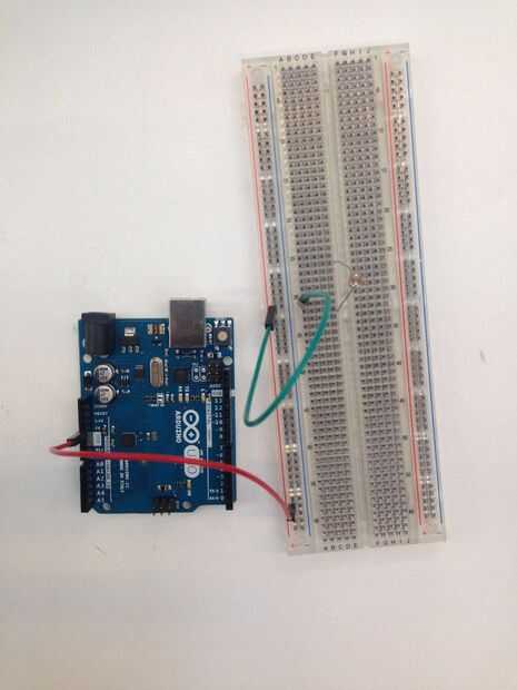 Luego montar el LDR y conecta en el riel de alimentación positiva de la placa. Nota: Conecte el nuevo cable (verde) en la misma fila de la protoboard como uno de los pernos de la LDR.