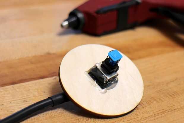El interruptor eléctrico se centró en el disco y pegamento caliente era asegurar el interruptor en el disco.