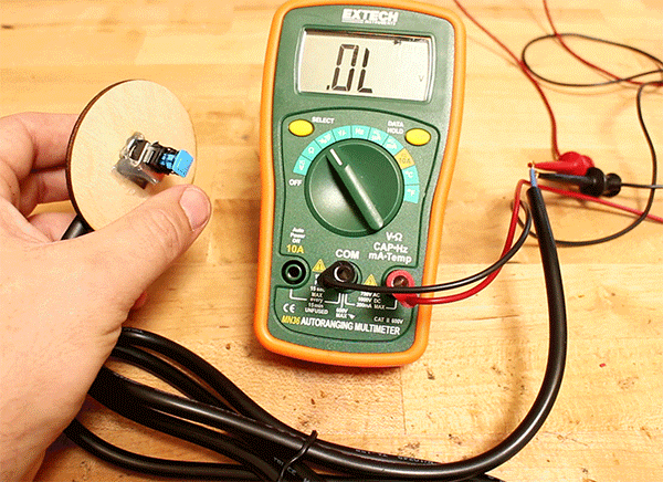 El multímetro aquí muestra un cambio de la no lectura de conectividad cuando se presiona el botón. ¡ Un éxito!