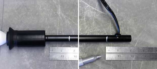 Realizamos la marca en la parte superior del eje de la lámpara pero realmente queremos quitar una sección desde la parte inferior de esta lámpara como hay menos cableado a interferir en nuestra corte, y es más fácil volver a armar la lámpara luego.