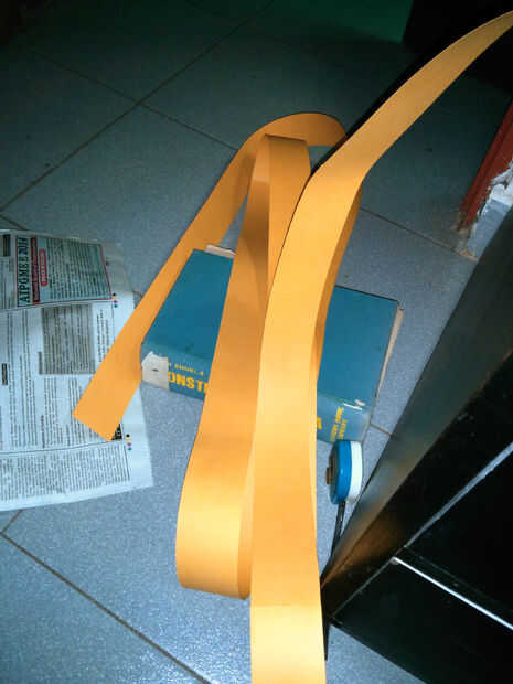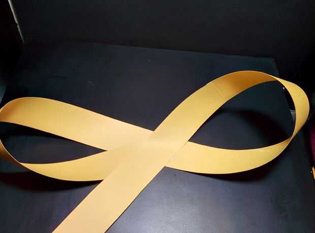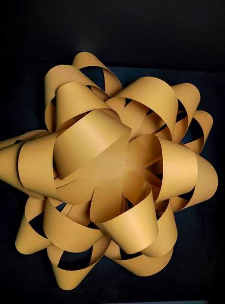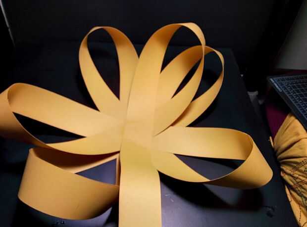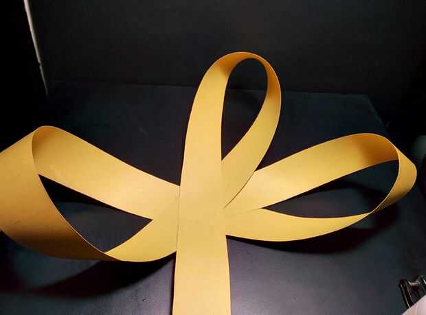 - Cuando llega al final de la tira, cortar con tijera y asegúrese de que al final se pega. Poner algún objeto pesado como un papel de peso en el medio del arco y esperar a que el pegamento se seque por varios minutos.