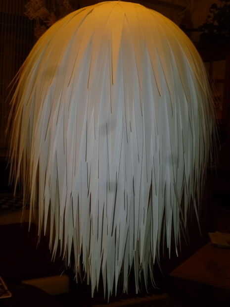 Aunque lleva paciencia acabado la lámpara no toma todo ese tiempo mientras tienes tiempo. Una vez alcance la parte superior o extremo de la lámpara Asegúrese de colocar los papeles para cubrir cualquier orificio donde se puede ver claramente la linterna. Se ve más bonito así en mi opinión así que pegué papel sobre algunos puntos que ya terminé para cubrir algunos de los errores que había hecho. Una vez que está aproximadamente a mitad de camino hecho con la vuelta también encontré más fácil colgar hasta el final para evitar que accidentalmente ripeo o doblar los papeles.