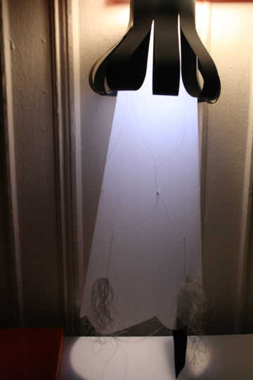 1. papel velo o cualquier semi translúcido + negro papel + cinta + hilo blanco