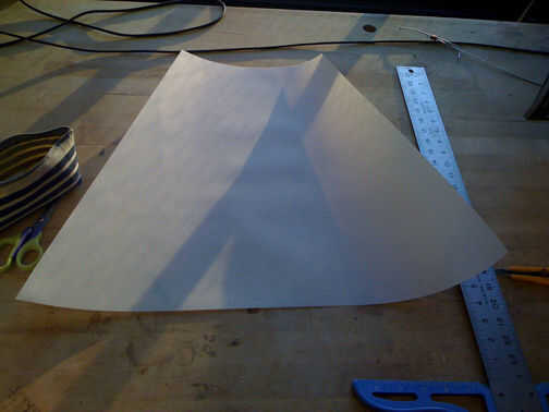 1. corta un trapecio: la parte inferior será mayor que la parte superior mientras que la derecha e izquierdas lados son la misma longitud. El lado de la parte inferior y superior dependerá de cuán grande quieres tu lámpara de acabado a ser.