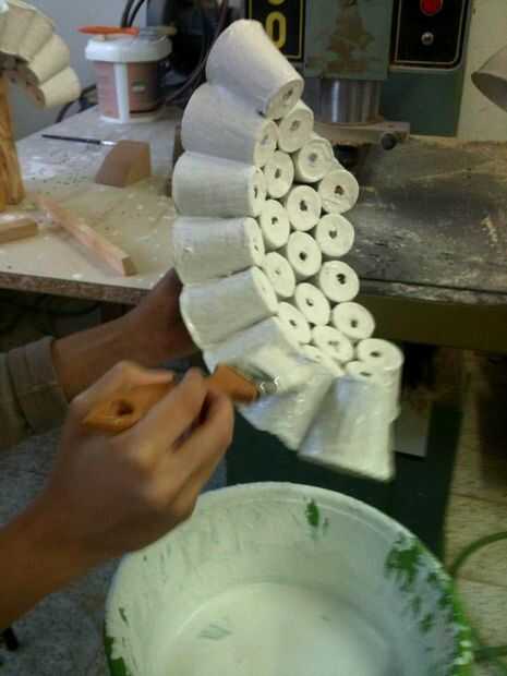 la masilla al iner y la superficie exterior de macetas de fibra. Después de macetas de fibra seca, repetir el mismo proceso 3 veces más. Superficie se convertirá en resistente y suave.