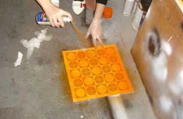 1. ajustada la plantilla en la placa de plástico. (Utilice los dedos para fijar la plantilla en ita€™ s lugar) 2. spray unas capas de pintura en la placa de plástico depende del tipo de aerosol, color y transparencia deseada. (Dejar secar entre capas).