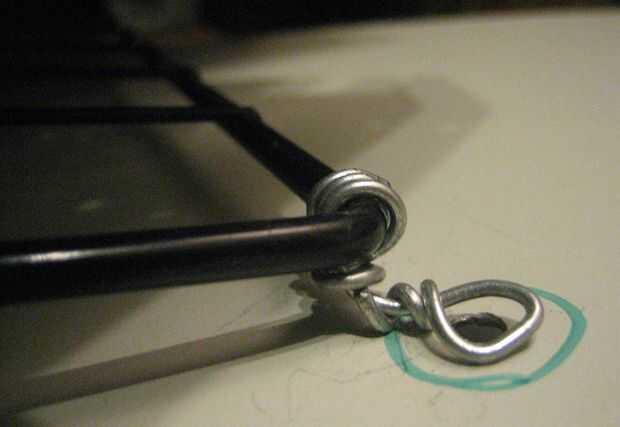 He doblado alambre se ajuste alrededor de un perno con arandela y había unido a la estructura de alambre.