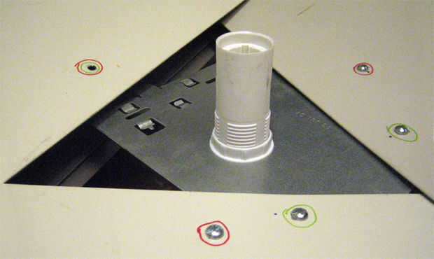 Taladre los agujeros para las tres luces principales (hoyos 3, 4 y 5). Ver imagen para su colocación (cerca del centro de cada depósito).