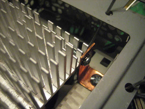 La segunda imagen muestra el disipador de calor unido a una bisagra simple. Esto cubre la bombilla del centro y que sea fácilmente accesible para su reemplazo.