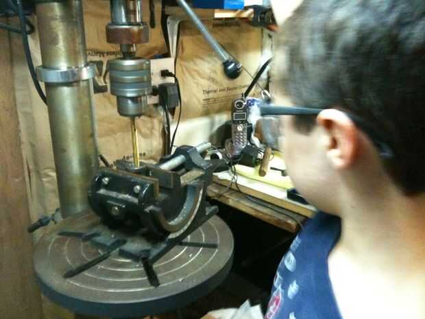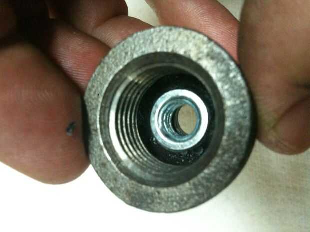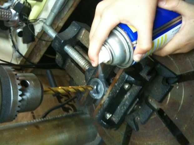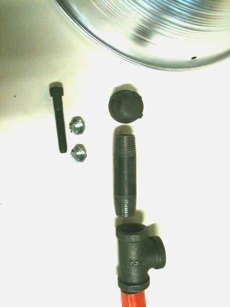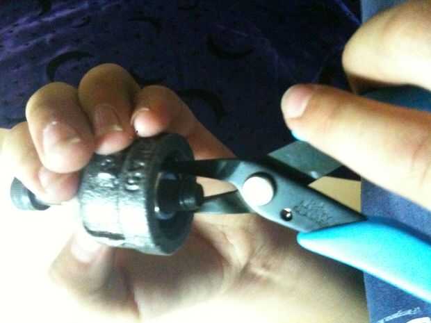 Para obtener el tornillo en el lugar correcto, taladre un orificio en la tapa y el uso las tuercas para sostenerla en lugar (uno interior y uno exterior).