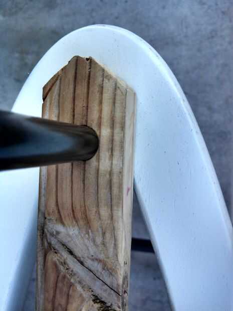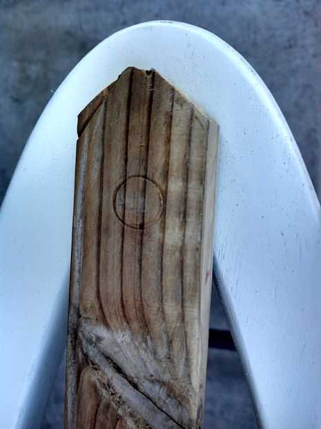 -Utilice el extremo de las barras para impresionar a un círculo sobre la estaca de madera, que actuará como una guía cuando se taladra un agujero.