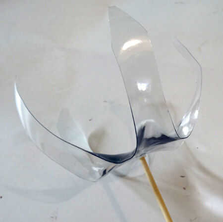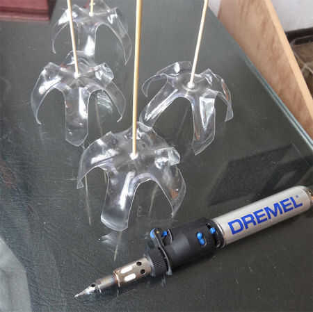 3. usando un soldador - trabajando rápidamente hacer un agujero en el centro de cada base y meter inmediatamente en el extremo romo de un pincho.