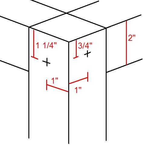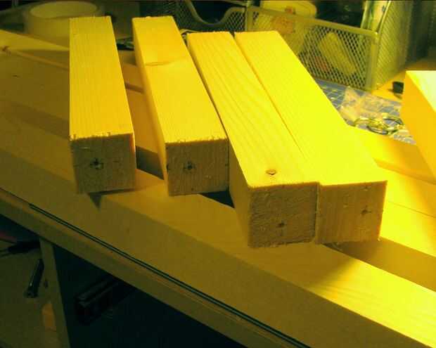 ... así que nos Taladre los agujeros para los tornillos. Necesita perforar a través de las piernas donde van los tornillos para sujetar las partes horizontales del marco y en los extremos de las piezas cortas donde se atornille los tornillos. Recuerde que no se pueden poner dos tornillos en ángulo recto a través de una esquina a la misma altura ya que conocerás en el medio, por lo que en cada esquina necesitará perforar un agujero en la madera superior de la otra.