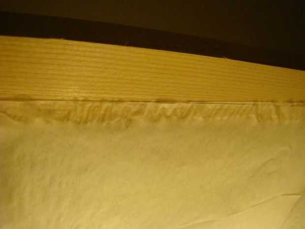 Puede que necesite hacer dos pequeños cortes donde el borde inferior del material de la cortina con la barra horizontal con la toma de luz en él.