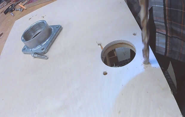 La apertura trazada fue cortada con una sierra y se perforaron los agujeros de perno, también utilicé un avellanado para enterrar las cabezas de los pernos. Los pernos fueron alimentados a través de la parte inferior y en el cuello, los pernos fueron utilizados para fijar el collar en su lugar.
