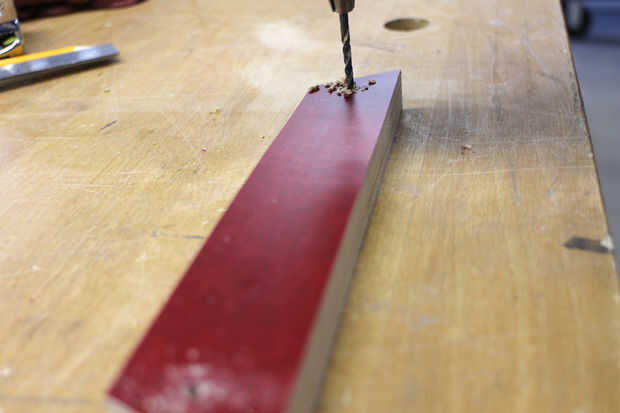 Por suerte fueron roscados los agujeros de montaje en el interior de la cabeza de la lámpara que pude. Medir los orificios de montaje, corté un pedazo de 3/4" madera para utilizar como un soporte para ajustar estos agujeros y orificios perforados para que coincida con los agujeros roscados.