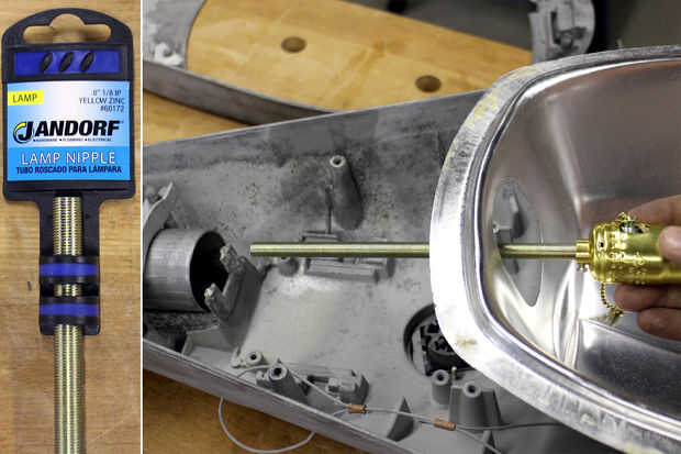 El zócalo de la cadena de tirón para esta luz tendrá estructura de descanso en fin de trabajar eficazmente. I la toma de cadena de tirón a la boquilla de la lámpara de 8" de rosca y colocado la Asamblea donde quería que se encuentra. Desde esta farola no se diseñó para tal una bombilla pequeña tuve que crear mi propio soporte para montar la boquilla de la lámpara a.