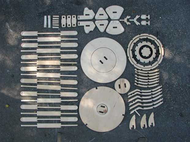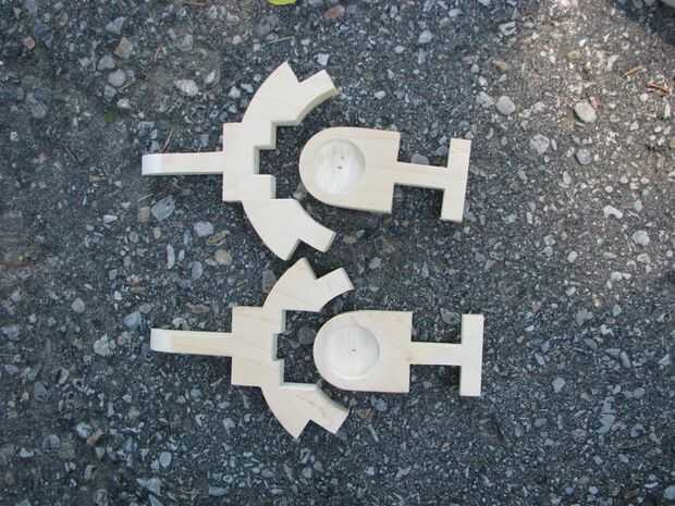 Para las piezas circulares, fuera todos los cortes fueron hechos con una sierra de banda con una plantilla de círculo, dentro de los cortes con una sierra de calar. Hice unas pruebas con una plantilla pero encontró mano corte trabajado mejor para mí.