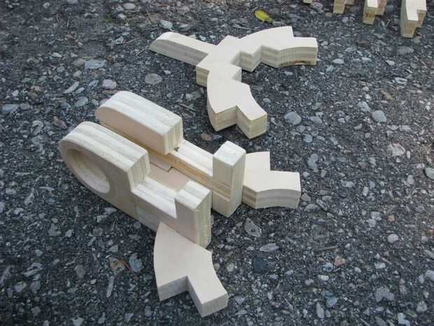 Las partes rectas fueron cortadas con una sierra de mesa y las plantillas.