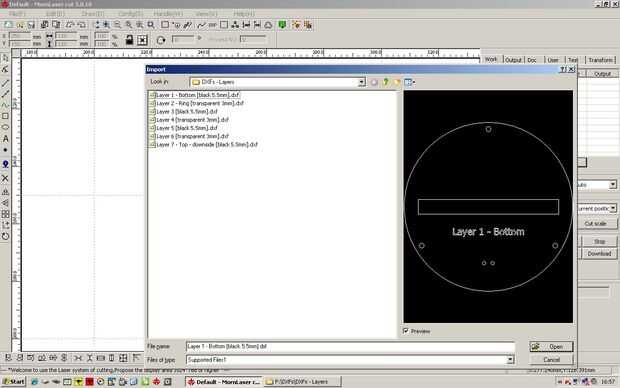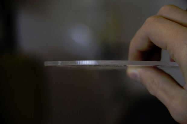 - Replicar medidas 1. (sí, incluso el enfoque automático!) to 4. para el acrílico transparente de 3 mm con esos tres transparentes capas (L2, L4, L6).
