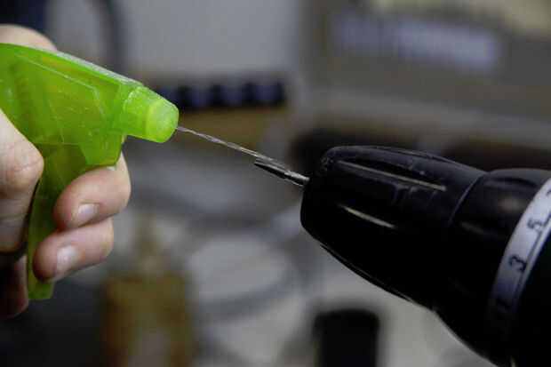 Importante: Antes de cada nuevo agujero: limpiar el taladro grifo de virutas y aplicar alcohol para evitar que el taladro de la fricción causa sobrecalentamiento y el acrílico se agriete debido al calor inducido y la tensión mecánica.