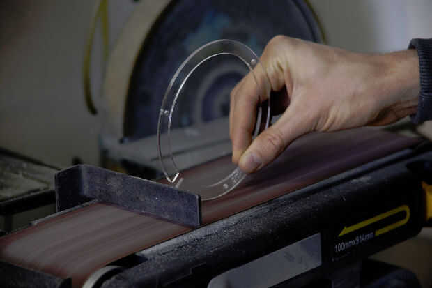 - Tomar todas las capas transparentes (L2, L4, L6) y desbaste hasta su exterior radial con un papel de lija (o una lijadora de banda, si tiene uno) hasta que se ve opaco.