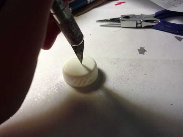 Poner un agujero en el tapa lo suficientemente grande fot los dos cables (preferiblemente aislados) para caber a través de.