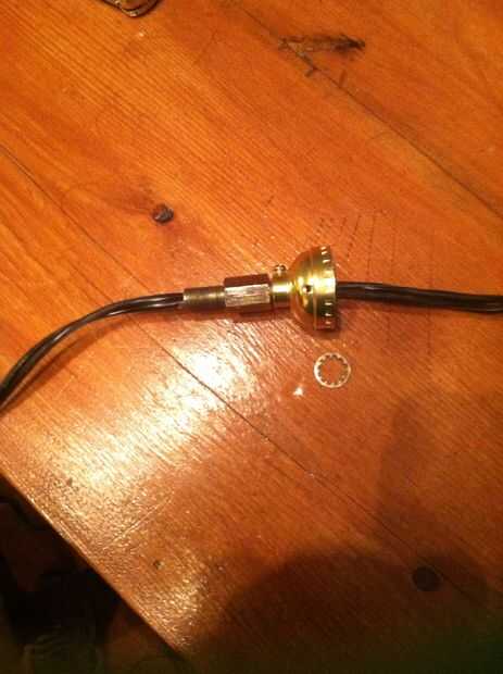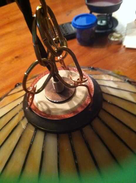 En la segunda foto se puede ver la parte superior de la pantalla. La placa superior que la toma se enrosca en es solo una bola de conservas tapadera que taladré un agujero en. Esto hace más rígido el portalámparas y mantiene la cortina se mueva en caso de que mis hijos decidan hacer pivotar a través del cuarto como Tarzán. La última foto muestra el interior de la lámpara. Puedes ver la cubierta corta que lleva a cabo la toma de luz.
