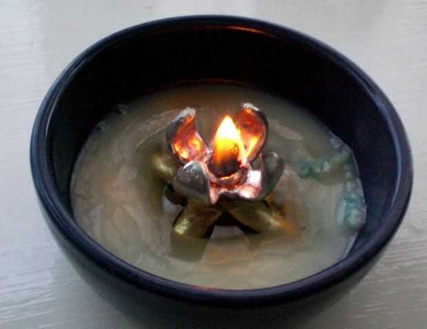 La razón es capaz de hacer esto es alrededor de la mecha, hay protuberancias en forma de pétalos - éstos capturan algunos de lo calor de la llama, que se llevó a cabo hacia abajo a través del cuerpo de la lámpara y dispersos a través de los pies, calentar el depósito de grasa y mantenerlo líquido y capaz de fluir hacia arriba de la mecha.