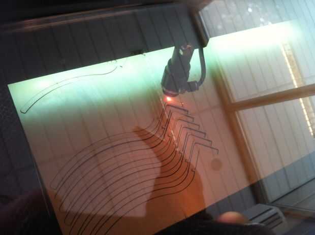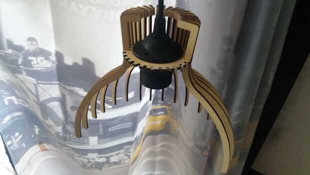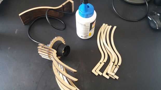 Lasercut la pantalla y la base de diseño de 3, 6 mm de madera contrachapada y pegar las piezas con superglue/woodglue. La lámpara colgante facilitará este proceso.