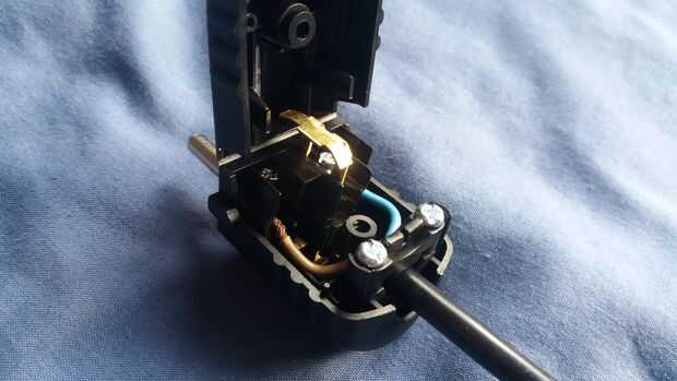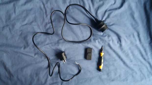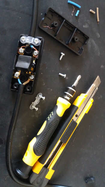 Tiras de los cables con un alambre-stripper/un cuchillo y conectado al interruptor y enchufe con un destornillador.