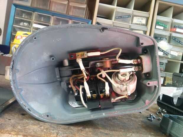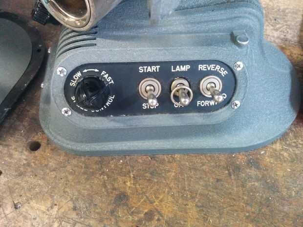 Con el fin de mantener las cosas simples reutilizar todo el cableado viejo y el americano precioso interruptores en la base del proyector. Conectarse el interruptor era extremadamente simple. Quite los tornillos de pulgar interruptores de inicio y la lámpara porque la están conectados con un puente dentro. Una vez que los interruptores estén flojos, el proyector puede ser volteado y quitar los 4 tornillos de cabeza plana para revelar los cables de los interruptores. El objetivo aquí es desmontar los cables desde el interruptor de marcha/parada y sólo ruta de energía a la lámpara y el interruptor de la lámpara. Esto permitirá que el interruptor de la lámpara en el exterior para operar la toma de luz y desconecte el motor. He incluyo antes y después de las fotos de los cables, la comentada es la foto final. Una vez finalizado el cableado, asegúrese de que el mecanismo de inclinación borra todo (el aviso en mi foto de uno de los cables es tocar la varilla roscada... Esto es un no-no y se fija después de la foto). Ahora el botón la placa inferior y los interruptores de nuevo como estaban.