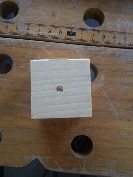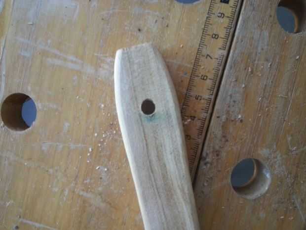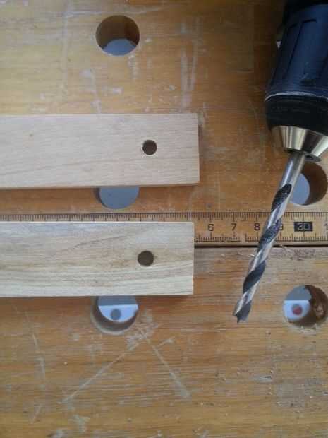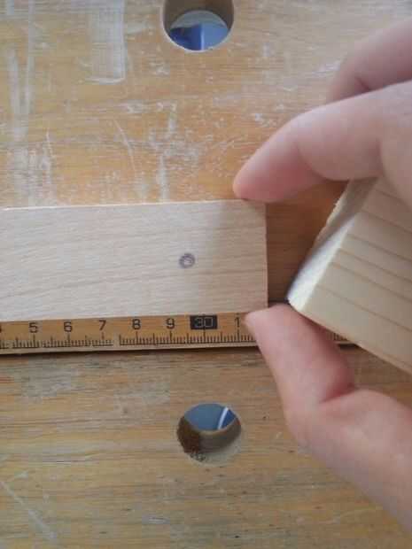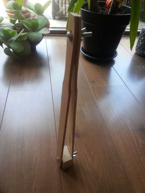 Boor aan de onderkant een gat bij de verfhoutjes twee (niet bij het handvat) este moet en het midden komen van onderdeel B. Dan boor je en van onderdeel B ook een gat de het midden. Dan ga je bepalen azada ver de je de verfhoutjes wil hebben op het plaatje. Maak dan ook gaten twee bij het handvat gedeelte. OOK en de plaatjes.