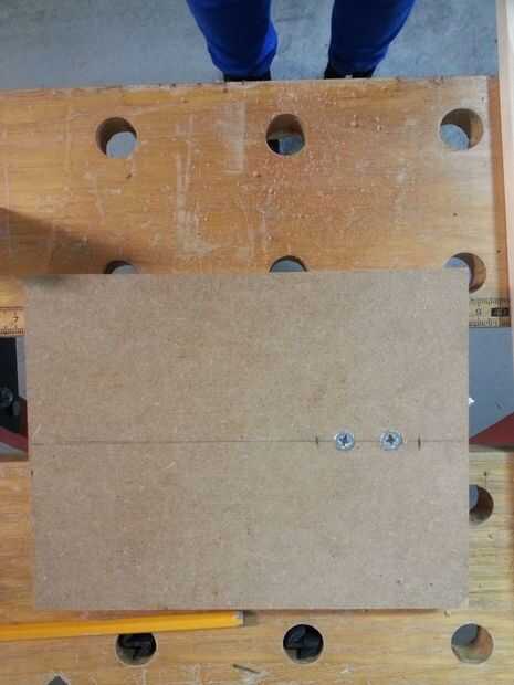 Hier boor je de schroeven doorheen. (schroeven die groter zijn dan de dikte van onderdeel A) MET de schroeven maak je puntjes twee en onderdeel hál B. de schroeven er weer uit en grosero este er en zodat de schroefpuntjes net uit het onderdeel un steken. Plaats Onderdeel er goed op (schroeven en de voor gemaakte punten) en boor de schroeven puerta onderdeel B (wel incluso vasthouden)